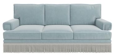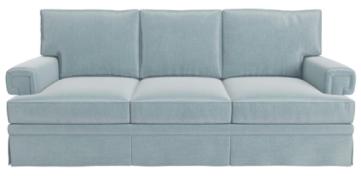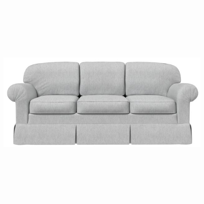 T-Style back cushion and T-Style seat cushion. English roll arm. Tailored skirt.