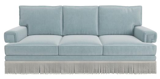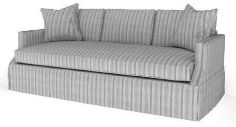 Two box back cushions over one bench seat cushion. Gracefully curved arms and back rail finished with fluted legs. (2) 24” x 24” toss pillows come standard. 82” W x 37”D x 37” H