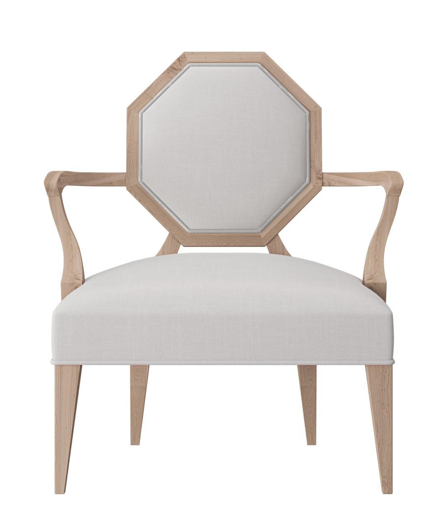 Exposed wood arms and octagon detailing at back. Tight seat and back. Shown in our signature wheat finish, but also available in a