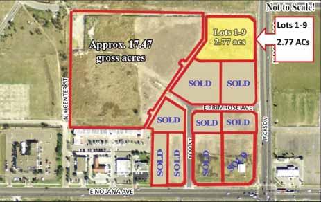 4301 N JACKSON ROAD, MCALLEN (LOTS 1-9) NOLANA & JACKSON! Approx. 2.77 gross acres with frontage on Jackson Road just North of Nolana. Potential uses may include (not verified): retail, medical, bank, gym, office, or commercial development project. Visibility and high traffic counts along Nolana & Jackson Rd. Great development opportunity. $1,800,000. Call Charles 956-682-3000. WEB#:562461