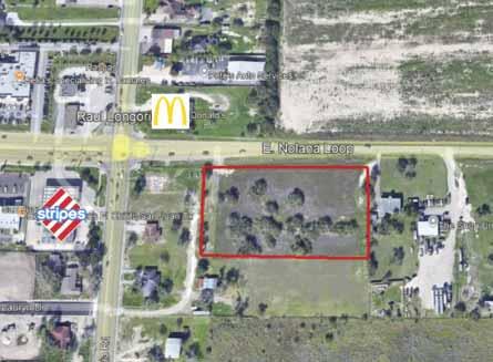 COMMERCIAL BUSINESS TRACT currently used for sale of commercial maintenance trucks. Lot has 1.85 AC +/-. Located 1.25 mi. E of US Exp. 281 (I69-C) on 4-lane Nolana Loop in San Juan, Tx., with turn-around in front. Subject to city restrictions.