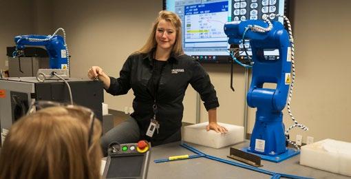 upon seeing her first robot in a factory, Robotics Instructor, Samantha Jarmusevich, knew she would one day pursue a career in robotics. After various operator, quality inspector and skilled trades positions, such as metal finishing and rework, she took it upon herself to attend college and become a certified welder in MIG, TIG, SMAW, OAW and OFC-A welding methods. Her drive to learn more about robotic programming prompted her to register for a yaskawa Academy class. “I paid out of my own pocket using my vacation time to attend a DX200 Basic Programming with Coordinated Motion class,” says Jarmusevich. “That course opened a door of opportunities in my life that I will forever be grateful for.” In fact, this training paved the way for her current job at yaskawa Academy – yaskawa Motoman’s IACET-accredited robotics training facility located at the company’s Miamisburg, Ohio, headquarters. From Basic and Advanced Programming (with or without arc welding), Maintenance and other specialty classes yaskawa offers, she puts her passion for teaching to use, passing her robotics and welding knowledge onto end users on a weekly basis.