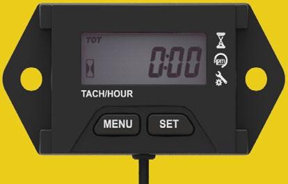 and hour meter combination with extra functions such as a job timer, service timer, and ability to set various firing patterns. The meter also keep track of the maximum RPM which can help in early detection of issue with engine. The unit has an IP67 rating which will protect against dust and water and will work in various environments