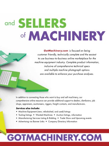 In addition to connecting those who want to buy and sell machinery, our comprehensive online resource can provide additional support to dealers, distributors, job shops, appraisers, auctioneers, riggers, freight contacts, and manufacturers. Services also include: • Machine Equipment (new, refurbished, and used) listings • Tooling listings • Wanted Machines • Auction listings, information • Manufacturing Services Listing & Bidding • Trade Show and Upcoming events • Advertising via Banner Links • Company Directory Information