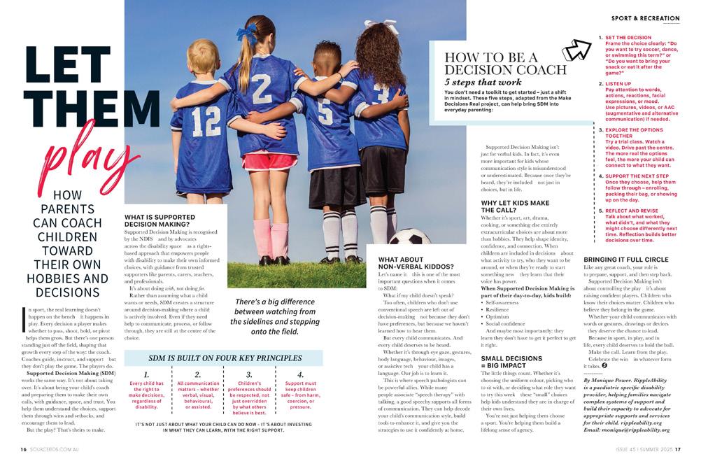 Source is Australia’s leading magazine for parents, carers and professionals of children, youth and young adults up to 35 years of age living with a disability. The glossy, 80+ page national magazine is printed quarterly with relevant, reliable and up-to-date information.
