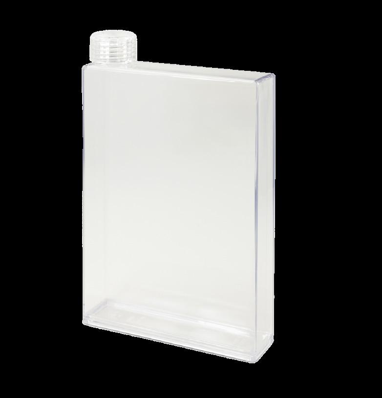 Futuristic 500ml water bottle which is shaped like a notebook with a secure screw on lid.