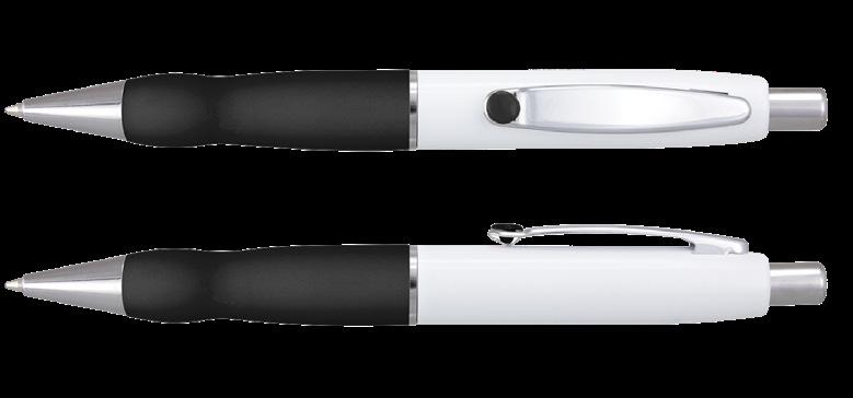 Click action metal pen with unique rubberised finish comes with black ink. Pen features matching stylus tip.