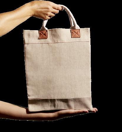 An eco-friendly tote bag made from Juco-Jute and Cotton fabric, a new and exciting material technology combining the strength and natural properties of jute with the finishing and texture of cotton fabric.