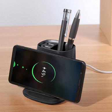 Smart desk mat which is manufactured from polyester with a non-slip rubber base.