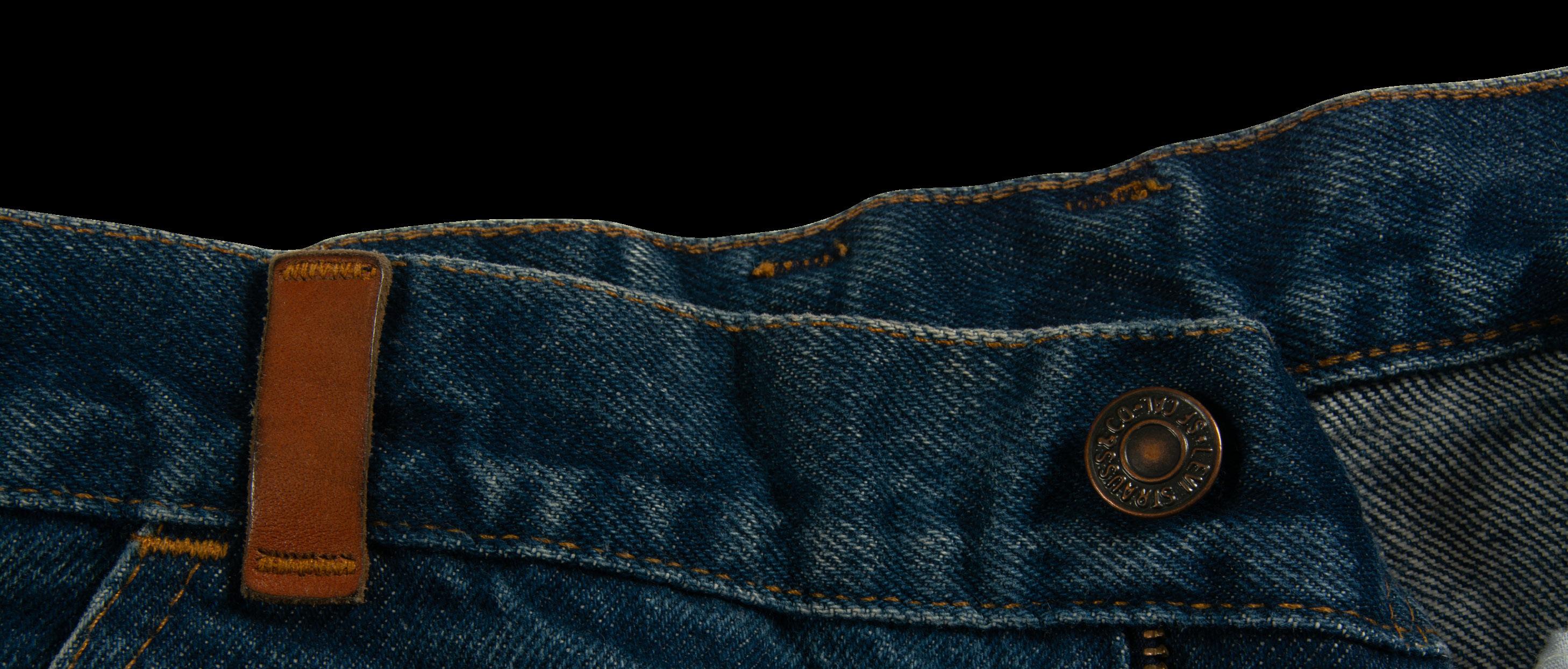 First appearing on a pair of Levi’s 501s in 1922, denim belt loops were an alternate to suspender buttons, an original feature of the jean, and reflected society’s growing fondness for belts over braces. The back cinch was also retained for those who wanted to wear suspenders. The cinch was finally removed permanently from the jeans in the 1940s when fabric was being rationed because of WWII.
