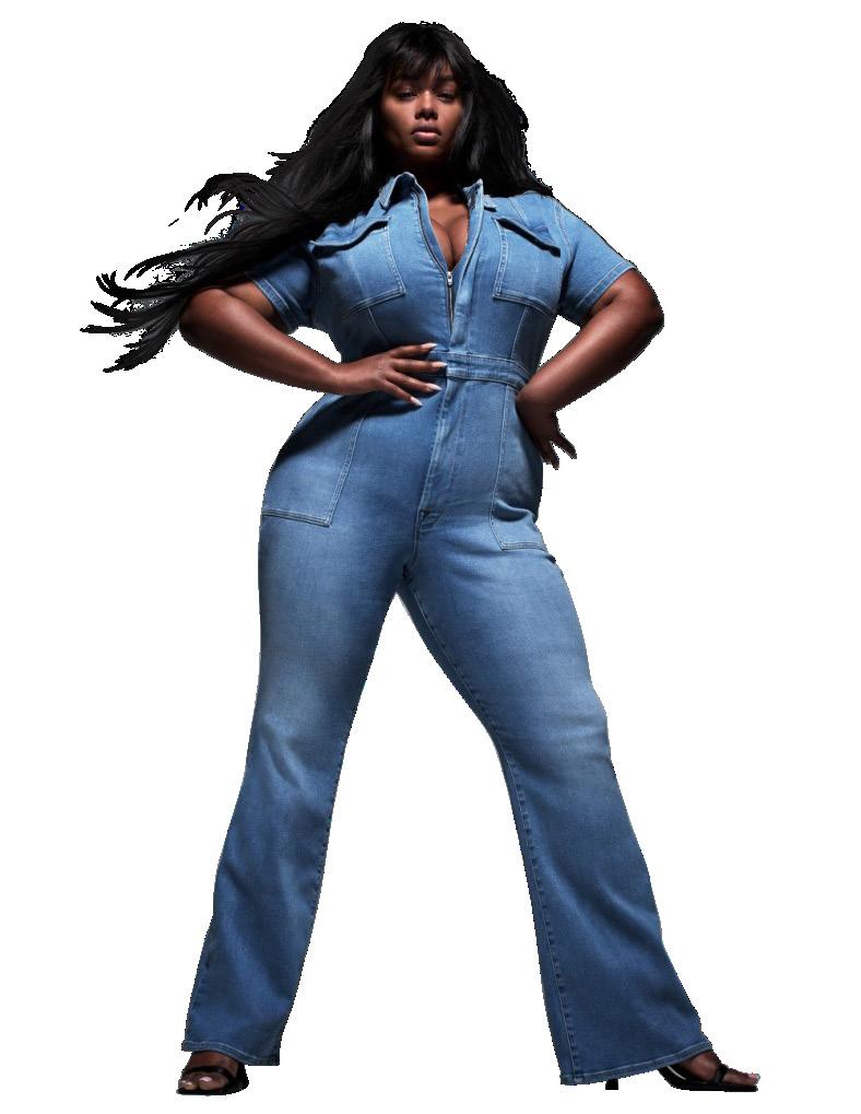 Jean cuts include the Curvy Baggy with a medium rise and wide legs, the high-waisted Twiggy skinny, the high-waisted Flare with a ’70s fit and the high-waisted Bell Bottom that creates an elongated silhouette. Other denim styles include a trench coat, a halter mini dress, a button-front dress, a skirt with an uneven hem, high-waisted shorts and a cropped jacket.