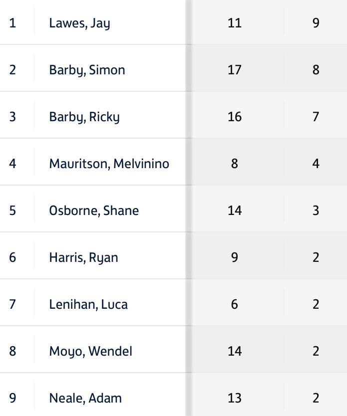 Ricky BARBY Simon BARBY Kieran BRADY Ethan CHAMPKINS Ellis CHAMPKINS Sam DUNN Ryan HARRIS Lewis HUDSON Ashley KNIGHTS Jay LAWES Scott LINDLEY Daniel LONG Melvin MAURITSON Wendel MOYO Adam NEALE Patrick O’BRIEN Shane OSBORNE Matt PEMBERTON Alfie SPEED