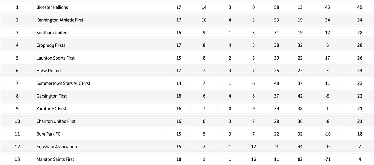 Saturday 12 March Garsington v Bicester Hallions (2:30PM) Halse United v Bure Park (2:30PM) Summertown Stars v Eynsham Association (2:30PM) Yarnton FC v Cropredy (2:30PM)