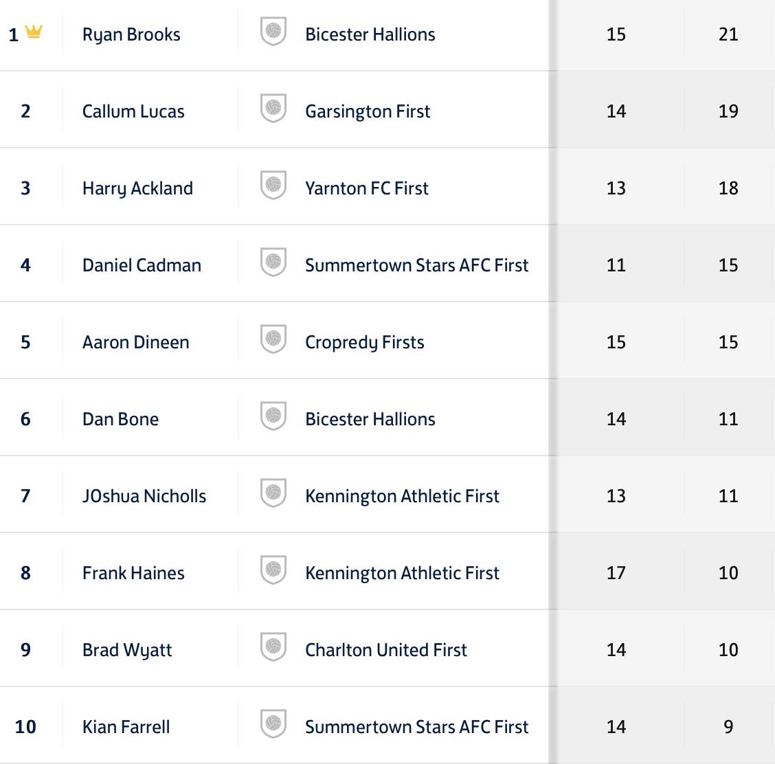 Charlton were victorious on the day back in January and will want to complete the double by winning the reverse fixture and picking up some needed points in the Oxfordshire Senior League table. Not unlike this year’s Southam team, Charlton have struggled to find a consistent run of form and sit in 10th place as a result. While scoring a similar amount of goals over 16 matches (compared to Southam’s 15 played), Charlton has struggled to keep the opposition from scoring and have allowed 36 goals in league play. Their leading goalscorer, Brad Wyatt will be full of confidence coming into Saturday’s match having scored a brace in the reverse fixture and 10 overall for the season.