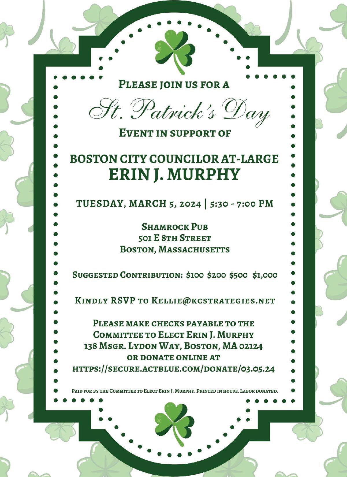 For more information, please contact Councilor Murphy’s office at 617-6353115 and Erin.Murphy@ Boston.gov, and Councilor Flynn’s office at 617-635-3203 and Ed.Flynn@Boston.gov.