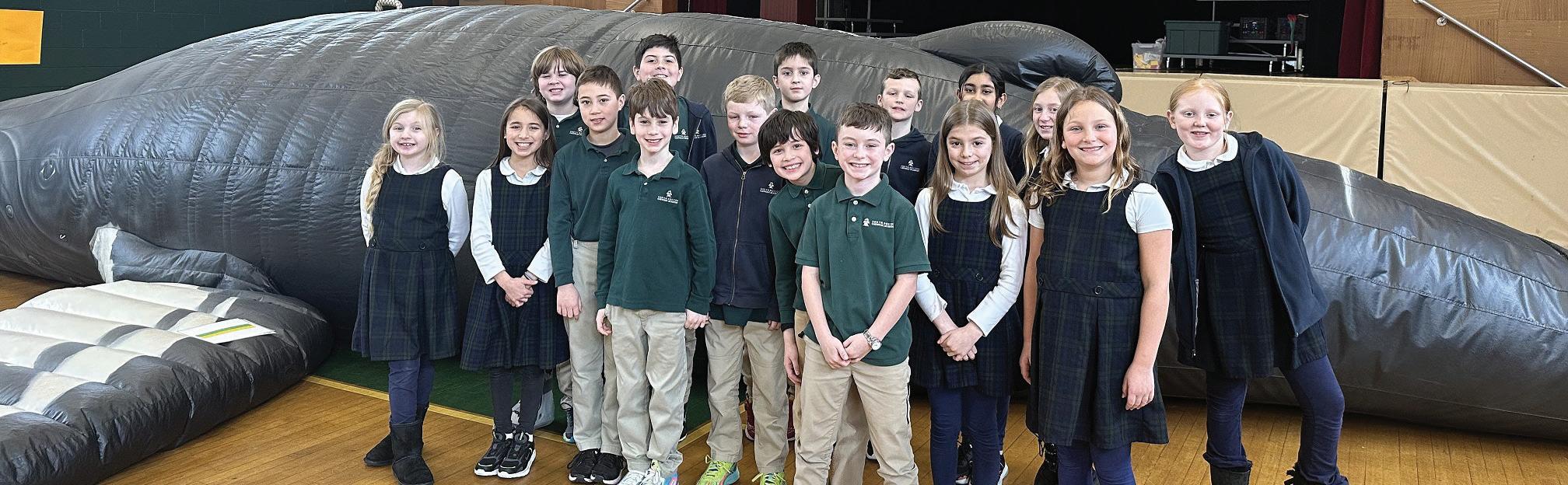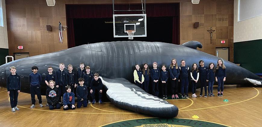 Recently, the students at South Boston Catholic Academy and in K0 at the Early Childhood Center had a Whale of a time at the Whalemobile. The Whalemobile offers unique and innovative programming using a life sized inflatable Whale. They bring