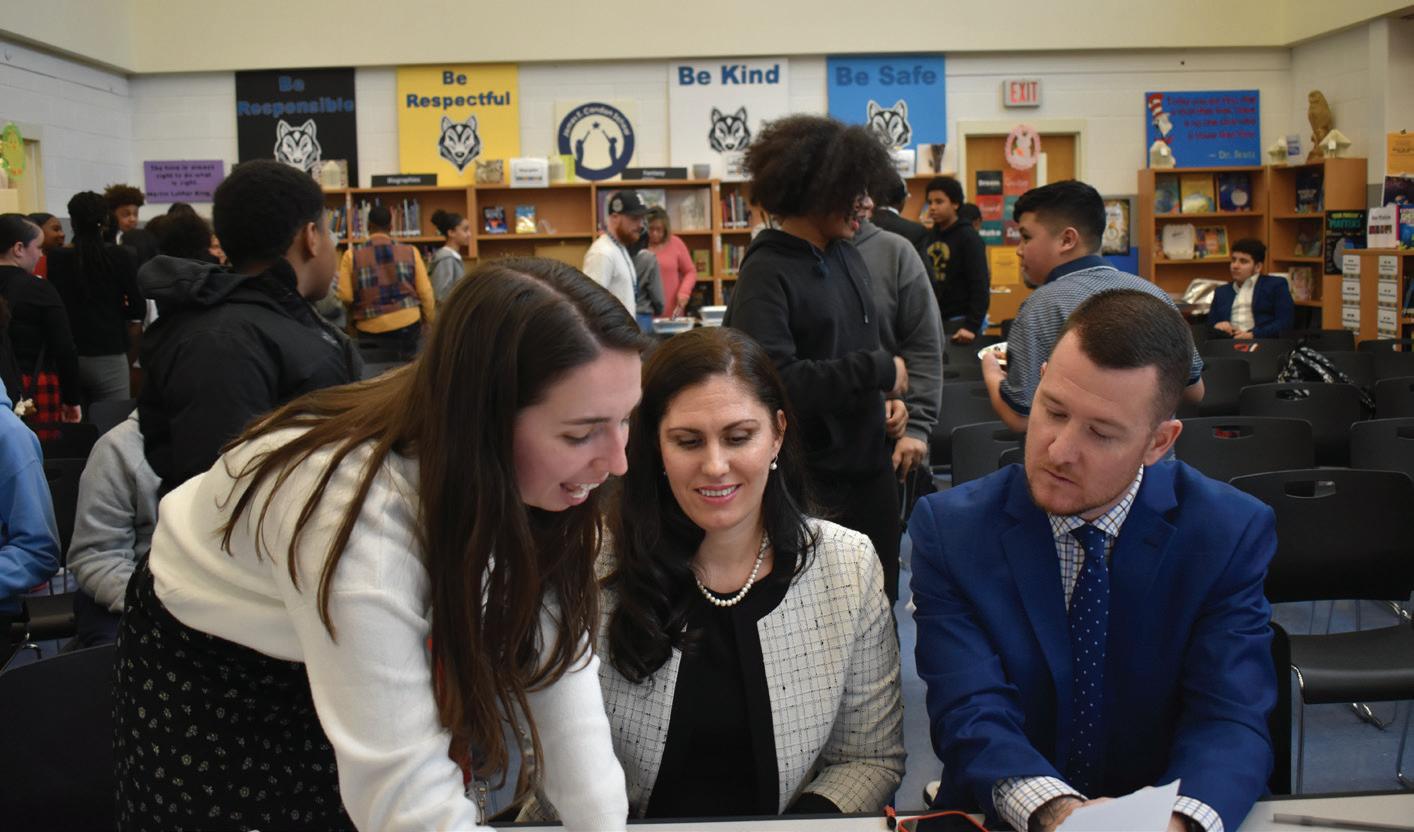 Ateacher with two years’ experience in Boston, Kate Fennessey, and her 7th grade Math students at the Condon School showed what is possible with commitment, support and focus. On March 21st, teams of students presented their concepts for innovative programs with an audience of classmates, community representatives and banking executives from HarborOne. All worthwhile, three were chosen for a special recognition “micro loan” by HarborOne Bank. The “02127 Boys”, Jayden Bengoche, Jio Mendez and Muktar Hassan, presented a clear and energetic proposal to clean, repair the update the Condon gym and thereby enhance it for school and community events and raise funds through activity fees for groups. Other impressive projects with special recognition included a plan to provide a “safe space” in the school for students with mental health issues, and one proposed a community garden/