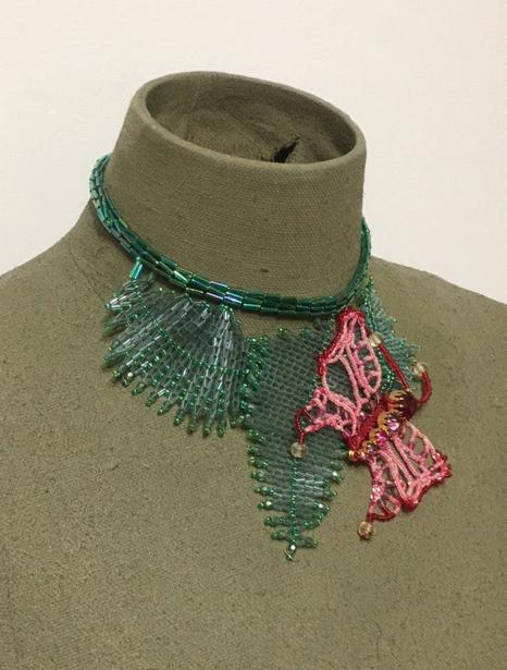 “PAPILLON”, necklace with beads and paste brooch by Souther
