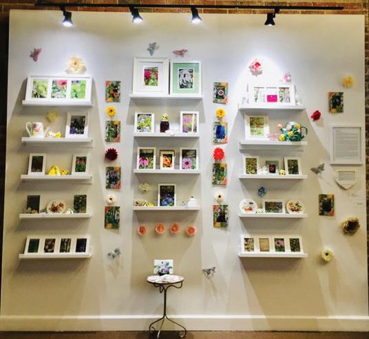 Bitetti began a pollinator garden in her backyard in 2020, after her next-door neighbor cut down trees and letting sunshine into her yard. Her plantings now include spring-to-fall blooming flowers, along with over-winter planters for perennials and annuals that thrive in the “micro-climates” her backyard experiences. Many of the objects in Bitetti’s installation were sourced from her neighbors. Honey from Caitlyn Murphy’s nearby beehive is one example. Ten crocheted bees were fabricated by the Crochet Club at the Neighborhood House. Many objects came from neighboring stores. “Neighbors” by Kathleen Bitetti is quite an eyeful, indeed. We could only include a few photos of the many works of art in “State of the Earth”. See the exhibit for yourself. The variety of art works and the number of media used are truly interesting. Many of them are not only beautiful, but