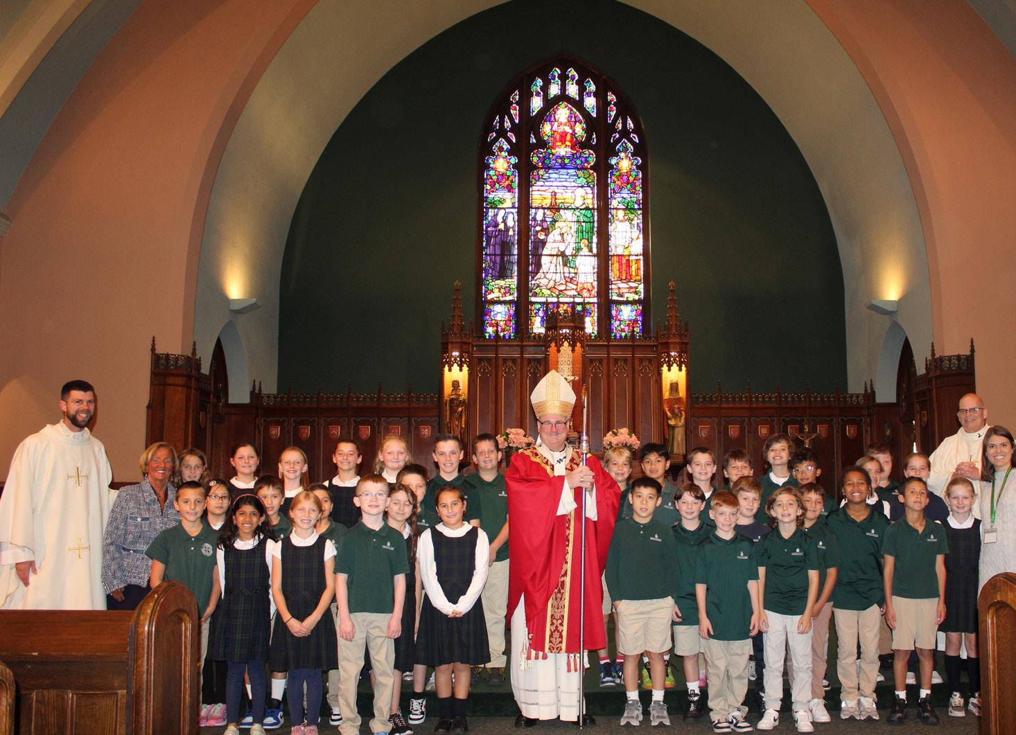 This special visit started with Archbishop Henning as the celebrant at the 9:00 a.m., School Mass at St. Brigid Church. Father Robert Casey, our Pastor and Father Peter Schirripa, our Parochial
