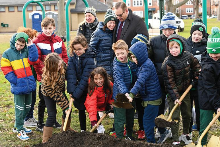 After the speaking program, officials and family members grabbed shovels for the ceremonial groundbreaking. Then Sloane McGrath’s South Boston Catholic Academy classmates helped break ground, too.