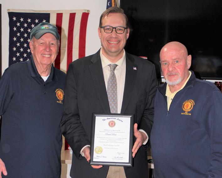 Commander Bill Thomas, Vice Commander Noel McAuliffe, Jr. Vice Commander George Brennan, Treasurer Greg Conlan and Mark O’Brien presented Nick Mancini of Tunnel To Towers a $10,000.00 dollar donation from the Martin F. McDonough Post, courtesy of the McDonough family. State Rep. David Biele received a plaque for his help and ded-