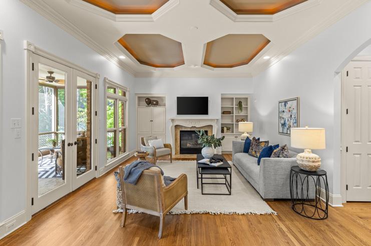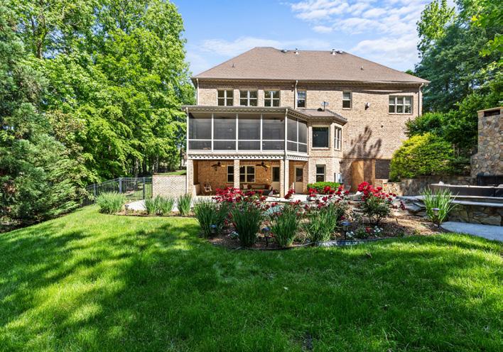 The rooms are large and stately with high ceilings, newly refinished hardwood floors accentuated by new interior paint. The chef’s kitchen features a new built-in Jenn-Air refrigerator/freezer, an island and walk-in pantry. The sunny breakfast area opens to a spacious fireside great room with coffered ceiling that is perfect for gathering with the family and your friends. As you peer outside, you’re invited to the screened porch which invites continued conversations and refreshments while enjoying the beautiful backyard view.