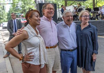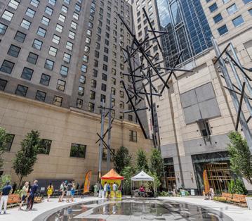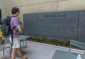 The striking new public space on the corner of Trade and Tryon streets recognizes the contributions made to our city by Mr. Hugh McColl, former CEO of Bank of America and it opened close to his 90th birthday. Two events were held to celebrate the opening of the park during the summer.