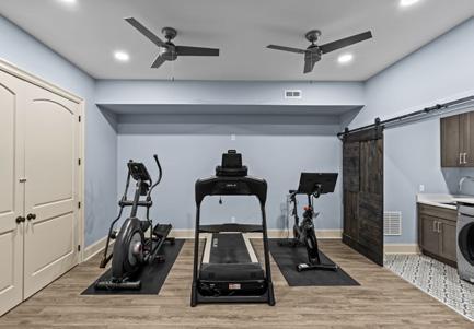 Moving downstairs to the walkout basement, you will find a cozy second living quarters, space for entertainment, a bedroom, full bath, half bath, kitchen/bar area, theater, recreation area and exercise space with an accessible second laundry. There is more than ample storage space and even a versatile walkin vault/safe room for your most prized and valuable possessions. The lower level offers flexibility based upon your housing needs. It is ideal to entertain friends and experience family fun on the downstairs terrace, then enjoy the heated saltwater pool, spa and the