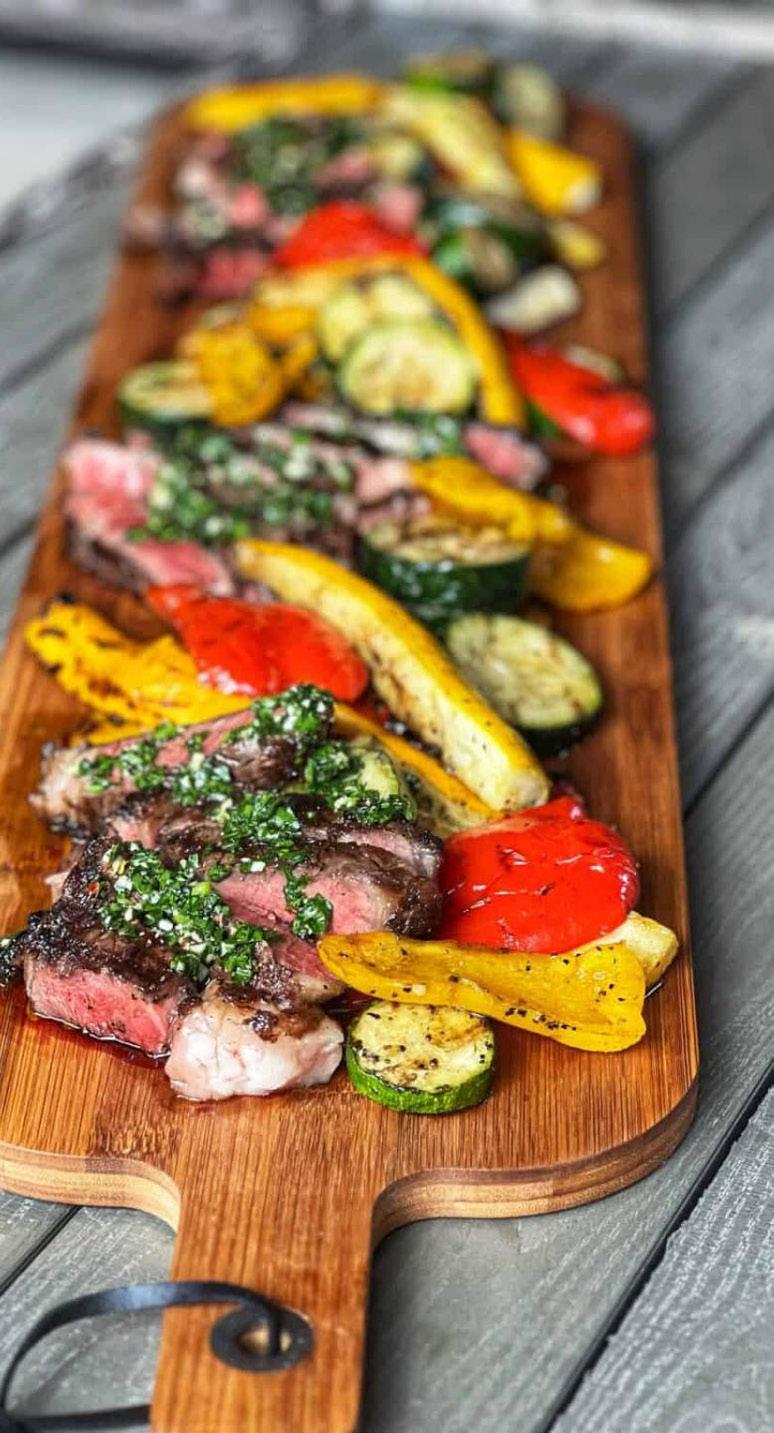 This meal is balanced and loaded with fresh vegetables and lean protein that are healthy and nutritious. With simple ingredients and straightforward instructions, you can have a healthy meal directly from the grill and on your table in minutes. It’s a versatile and customizable array of protein and vegetables allowing you to adjust the ingredients and quantities according to your needs. You can substitute steak with chicken, salmon or any other protein to make the meal uniquely yours. This Grilled Steak Board is a sure way to wow your guests, and it’s easy to serve family-style, too!