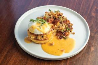 smoked bacon while the Hangover Hash is made from mouthwatering braised prime rib accompanied by roasted potatoes, poached egg and signature Hollandaise.