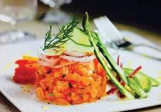 Raw bar offerings include chilled oys ters on the half shell, salmon tartare (miso soy, citrus edamame smash, pickled Fresno peppers), Alaskan king crab legs and citrus poached shrimp cocktail.
