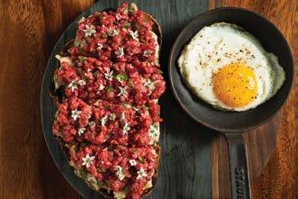 A la carte entrees range from tradi tional favorites like fluffy thick-cut brioche French toast topped with cognac roasted golden apples and three-egg omelets. The “Brunchy Smash Burger” arrives as a cookedto-your-liking double patty with Ta basco aioli, fried egg and applewood