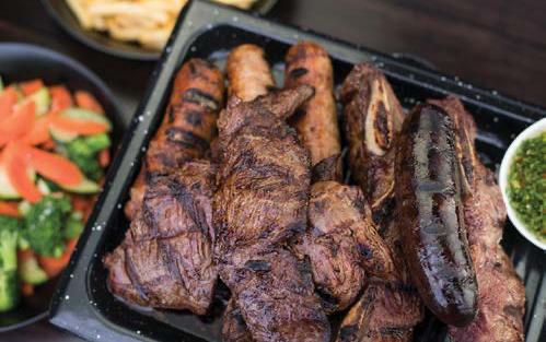 crumble. Among the main courses meant to share is the bistecca alla fo rentina - a grilled to perfection Mor gan anch bone in orentine stea accompanied by Tuscan fries and black garlic bone marrow butter.