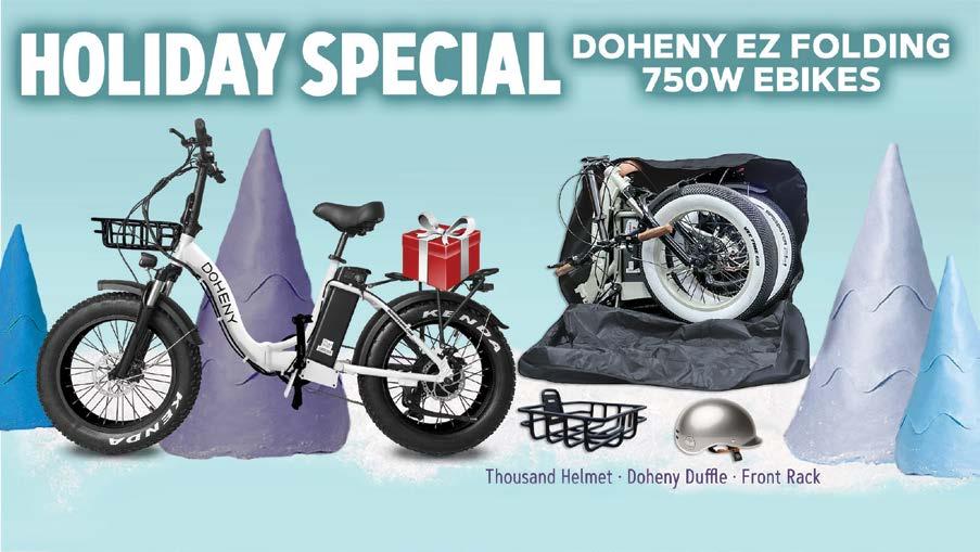 Doheny ECO SOUTH OC’S MOST AFFORDABLE, FOLDABLE E-BIKE: $499 - $1,499 Front and Rear Fender Included 5-Pedal Assist Free Rear Cargo Rack 28 MPH Top Speed 750 W E-Bike Upgrade Included 40 MILES AVERAGE RANGE Hyrdaulic Brake Options NOW AVAILABLE These Bikes are COME RIDE WITH US SELLING FAST! White Glossy Black EX Yellow Doheny Blue EX Aqua Blue Racing Red IN STOCK NOW – ORDER CHRISTMAS EBIKES NOW TO GUARANTEE YOUR SPOT Doheny Cruiser 34163 Pacific Coast Hwy. #100 Dana Point www.dohenybike.com (949) 427-3305 UP TO $800 OFF COMMUNITYPUBLICATIONS LLC P.O. Box 73188 San Clemente, CA 92673 PRSRT STD ECRWSS U.S. Postage PAID Santa Ana, CA Permit #4833 ******************ECRWSSEDDM***** Postal Customer