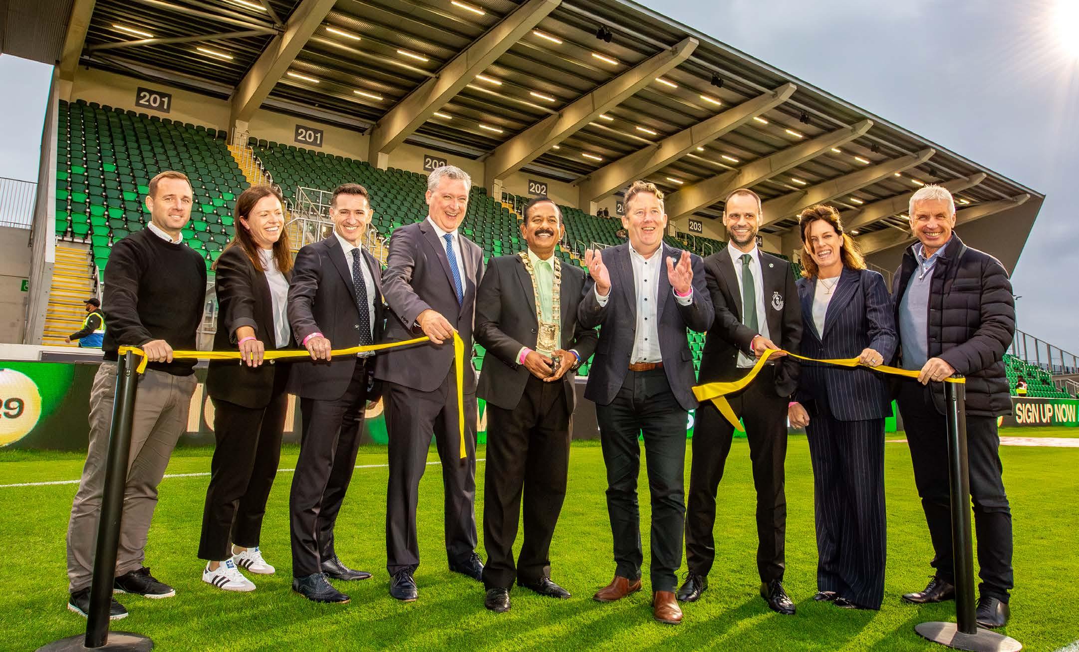 The newly constructed North Stand and enhanced corporate facilities at Tallaght Stadium was unveiled by the Mayor of South Dublin Cllr. Baby Pereppadan and Minister for Housing, Local Government and Heritage Darragh O’Brien TD, during the highly anticipated League of Ireland match between Shamrock Rovers and Bohemians on Monday, September 23rd.