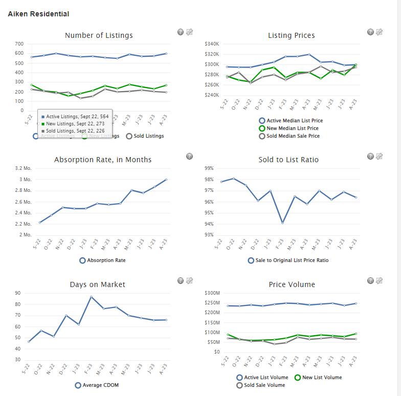 Aiken County SOLD Current Aiken County Market Stats ACTIVE LISTINGS 536 UNDER CONTRACT 339 SOLD LISTINGS AUG 196 $344,800 AVG. SALE PRICE AVG. LIST PRICE $349,600 AVG. DAYS ON MARKET FOR CLOSED 66