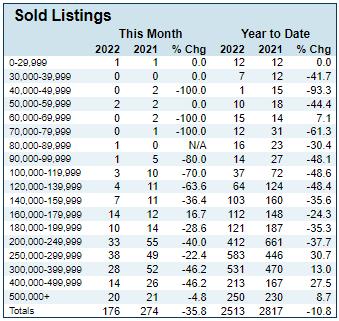 Statistic 22-Nov 21-Nov % Chg 2022 YTD 2021 YTD % Chg Absorptio n Rate 2.5 2.4 2.9 1.9 2.4 -21.0 Average List Price $413,804 $374,596 10.5 $341,641 $303,595 12.5 Median List Price $299,250 $294,950 1.5 $279,900 $254,960 9.8 Average Sale Price $305,356 $292,345 4.5 $315,755 $281,366 12.2 Median Sale Price $263,930 $262,200 0.7 $275,000 $241,000 14.1 Average CDOM 52.0 38.0 36.8 52.0 52.0 0.0 Median CDOM 27.0 23.0 17.4 27.0 21.0 28.6 PAGE 11 November 2022 Recap FLEXMLS Market Update (Aiken County)