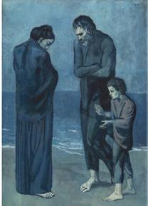 numerous anxiety disorders, and depressive episodes. This can be directly seen in most, if not all of his work. Considered his most famous period of painting, Picasso’s “Blue Period” is thought to be reflective of his mental state at the time. With cold tones darkening each brush stroke, this period from 1902 to 1904 directly represented his emotional state. Pieces like “The Old Guitarists,” “The Tragedy,” and “The Blue Room” express his desperation and lack of hope. Soon after this, Picasso’s darkened outlook gave rise to his “Rose Period,” which took place between 1904 and 1906. During this time, colors bled from blue to warmer reds and pinks. It was during this time, through pieces filled with a ravishing array of soft colors like “Woman with Loaves” and “Garçon à la Pipe,” that he found a healing light from the darkness of his life.