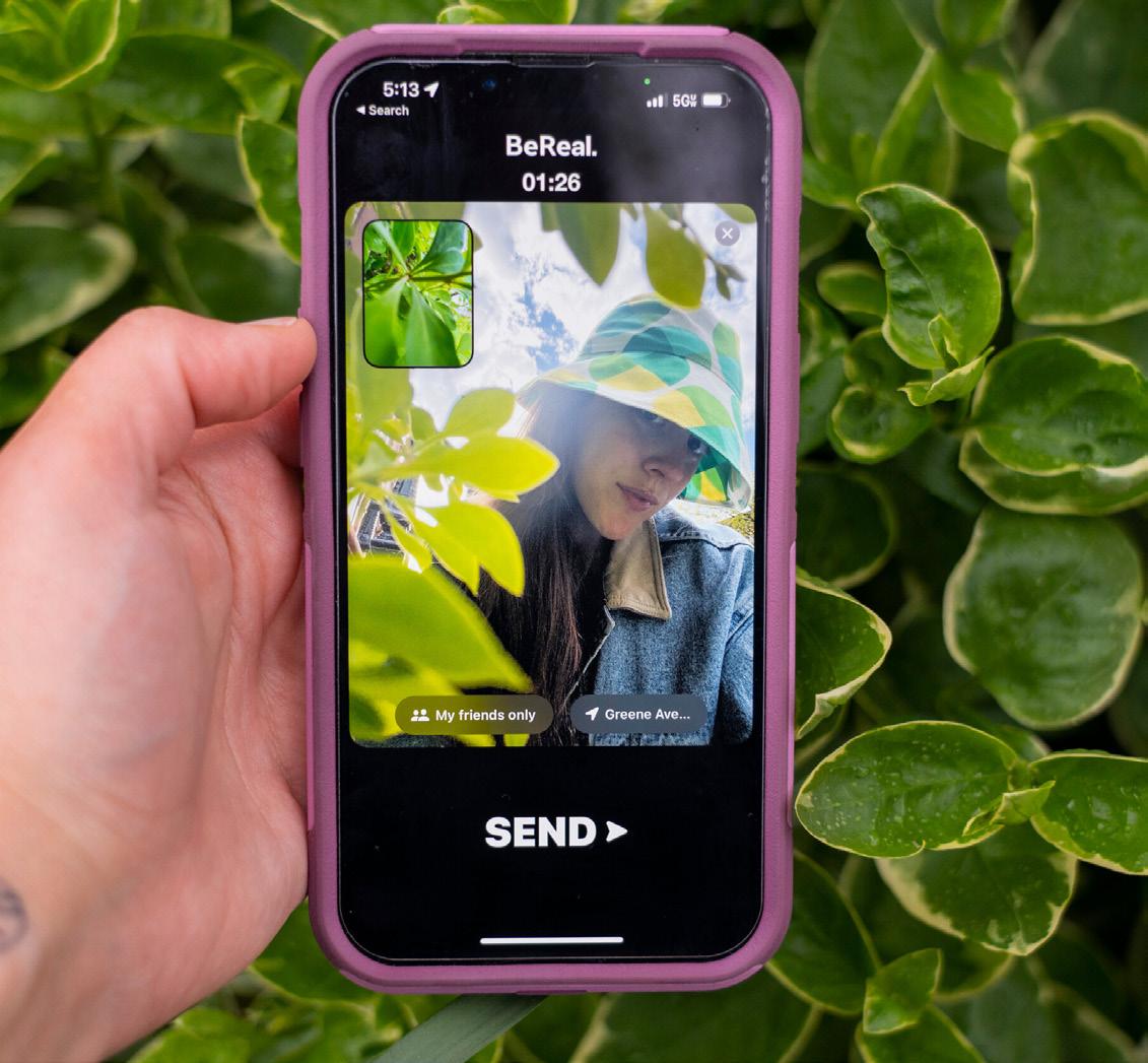 to leave a realmoji or a comment on all of their friends’ posts and are able to interact with them in a special way. Realmojis are actual reactionary pictures of your face you can take before posting or take on the spot to share how awesome you think your friends’ posts are. Overall, I have found BeReal to provide an incredibly positive online environment, and I believe that BeReal is the start of an amazing movement to eliminate the standards for perfection in our media.