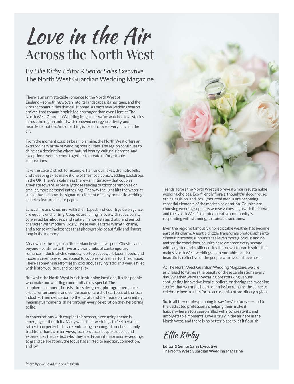 North West Guardian Weddings is a quarterly digital magazine which covers all aspects of your special day.