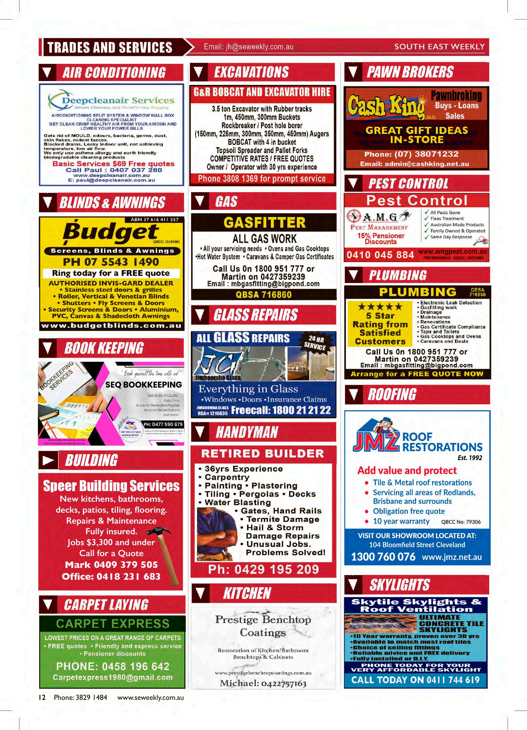 Mt Cotton, Thornlands, Ormiston, Wynnum, Wynnum West, Capalaba, Tingalpa, Carindale, Sunnybank Hills, Calamvale, Marsden, Crestmead, Waterford West, Bannockburn, Helensvale, Ormeau, Kalbar, Boonah, Greenbank, Boronia heights, New Beith, Flagstone, Jimboomba, Jimboomba Woods, North Maclean, Munruben, Mundoolun, Cedar Vale, Cedar Grove, Beaudesert, Edens Landing