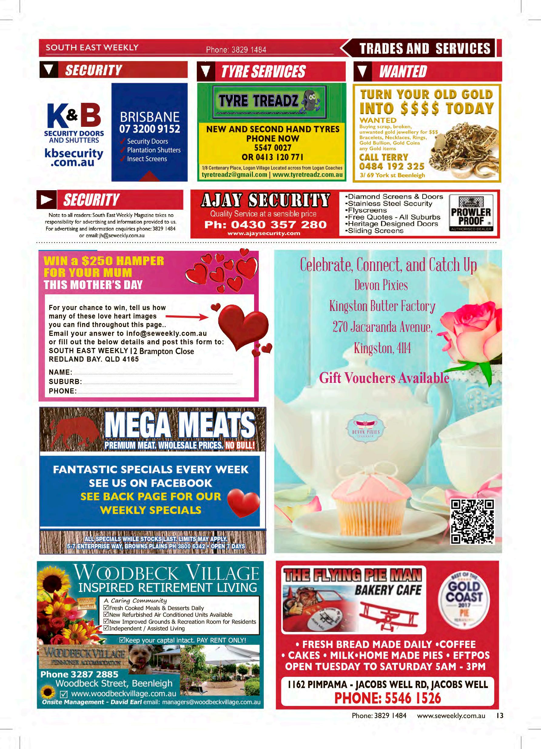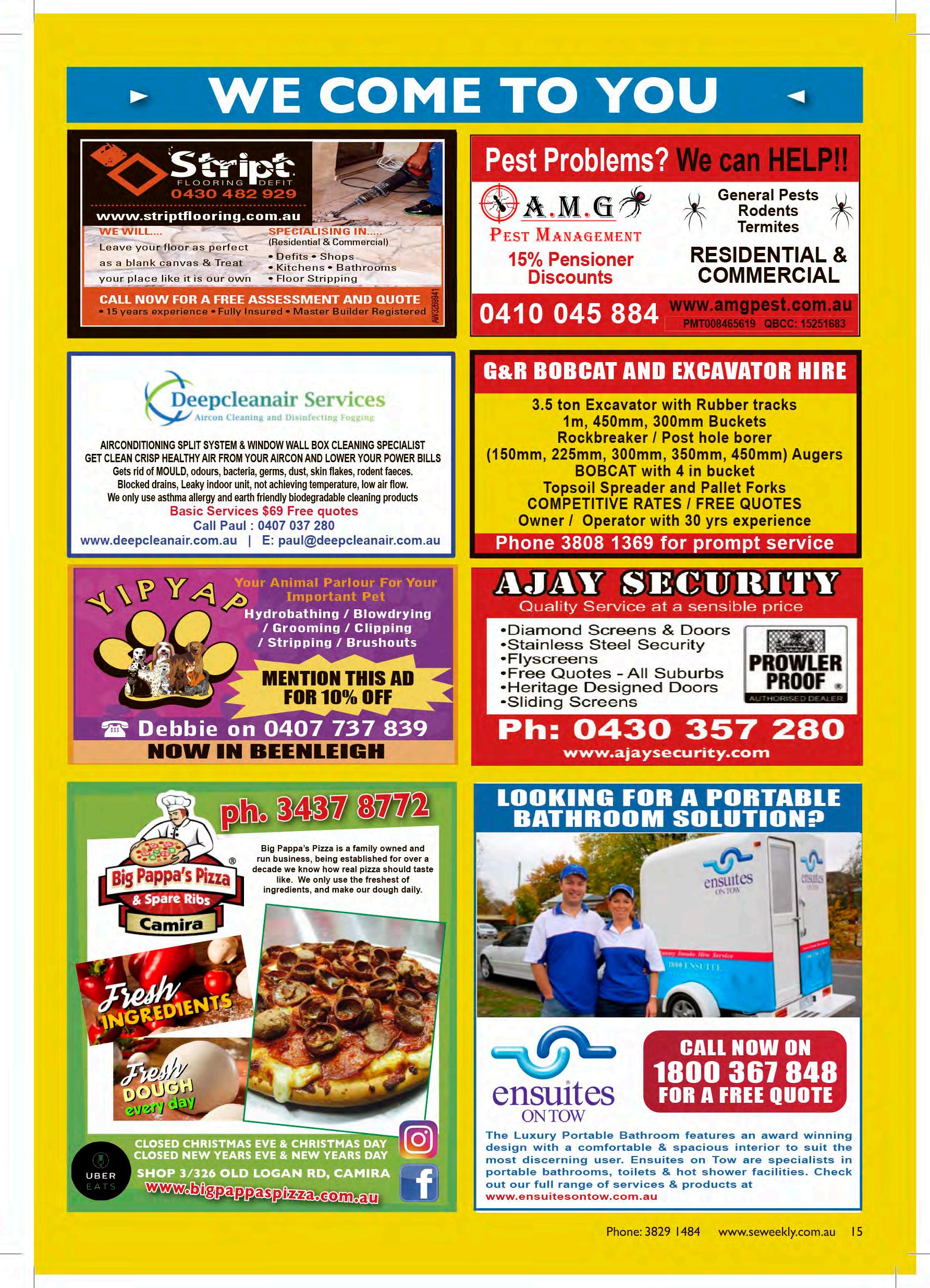 Beaudesert, Harrisville, Kabar, Boonah, Bellbird Park, Brookwater Cedar Grove Cedar Vale, Jimboomba, Flagstone, Greenbank, New Beith, Boronia Heights, South Maclean, Mundoolun, Yarrabilba, Park Ridge, Munruben, Regents Park, Heritage Park, Marsden, Crestmead, Calmavale, Wynnum, Capalaba, Ormiston, Wellington Point, Mt Cotton, Edens Landing, Ormeau, Loganlea, Nindooinbah