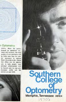 Steele hadn’t spent much time in Memphis before moving into a fraternity house on the SCO campus. He practiced his finger skills on the house’s phoropter and enjoyed his “incredible” optometry class with J.M. Jamieson, OD, but Steele’s first year at SCO was a struggle. He remembers scoring a 12 percent on his first ocular disease test (the subject was “pathology” then) because his spelling skills were lacking. “ I understand why [the professor] was doing it,” Steele says now. “He didn’t want our graduates to be sending letters of referral full of misspelled words.”