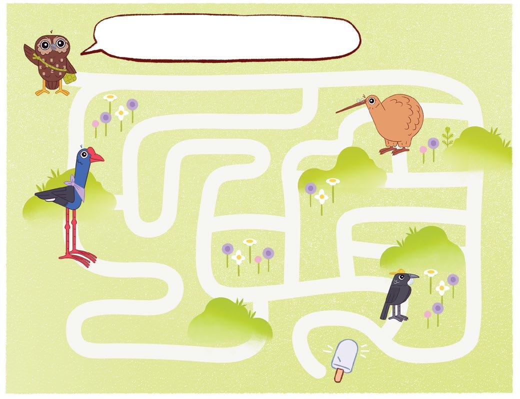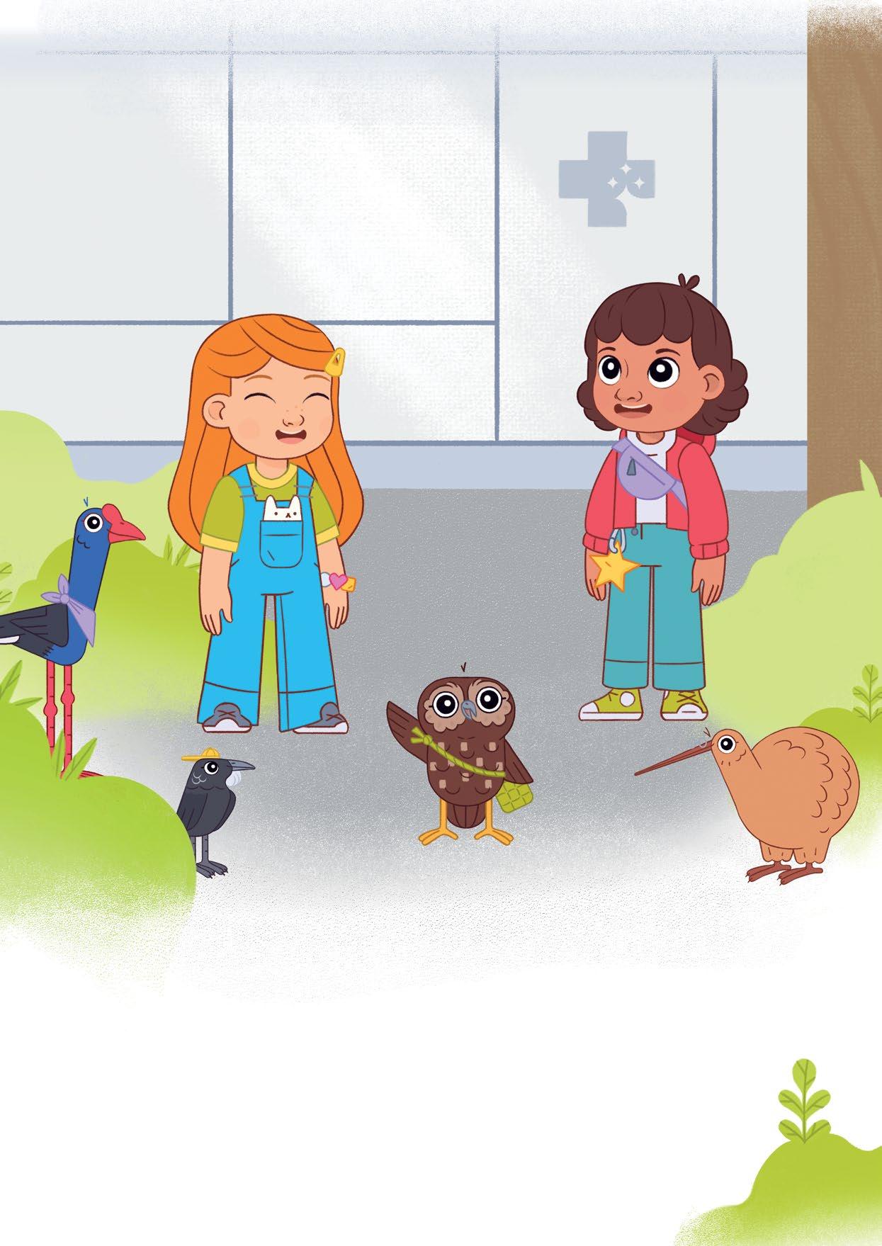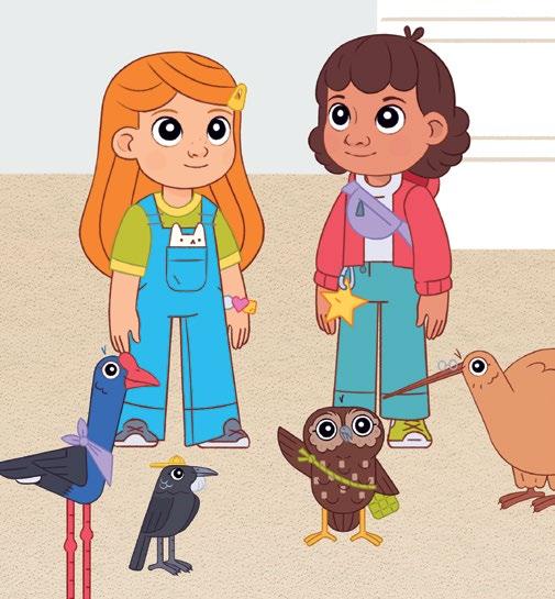 Rūhī invites his friends Pipi the Pukeko, Tuku the Tui, and Kora the Kiwi to join them too.