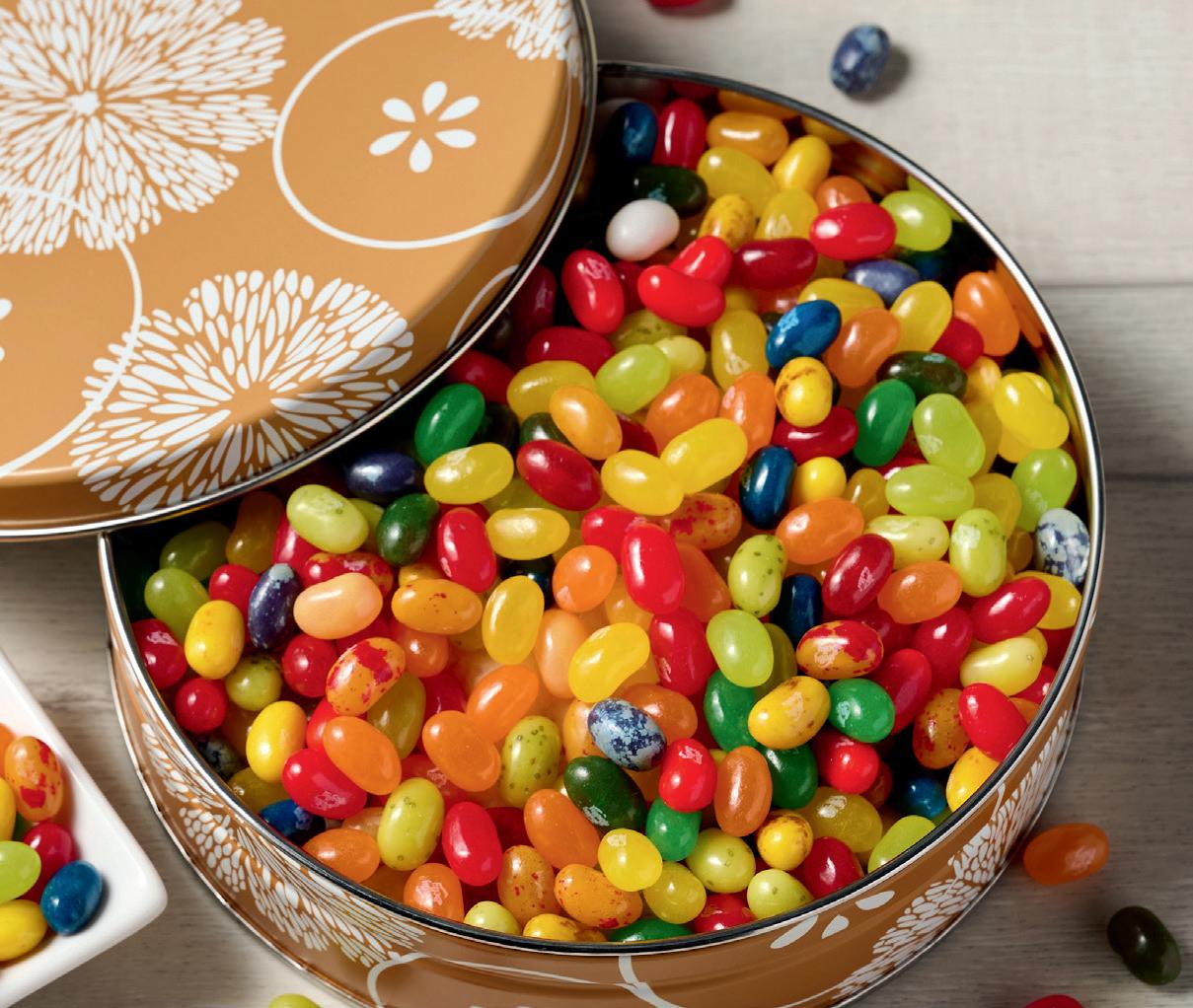 eThe fruity flavors of the gourmet jellybeans in this attractive gift tin are so intense, they might have come from our own groves and orchards! Sixteen distinct flavors fill this assortment, including tangerine, grapefruit, cherry, apple, plum, pear and many more.