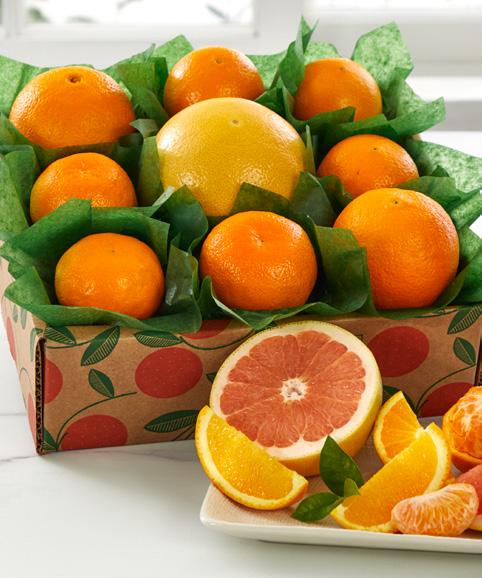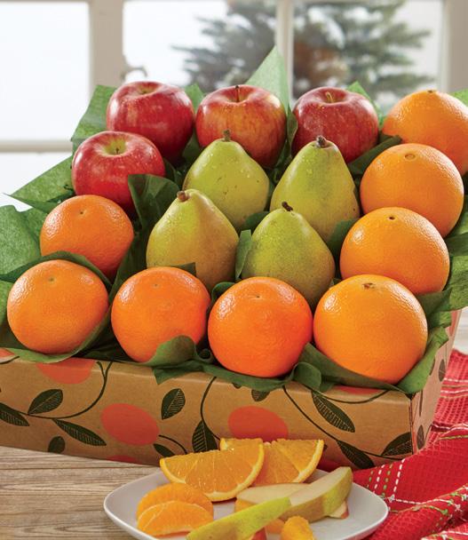This classic assortment arrives fresh and juicy. Our five-in-one collection delivers fresh flavor by the boxful. Whether you send it as a gift or order one for your own family, these are truly winter’s brightest jewels, sure to delight and impress. Includes Grove Navel Oranges, Orchard Apples, Ruby Red Grapefruit, Honey-Sweet Tangerines and D’Anjou Pears.