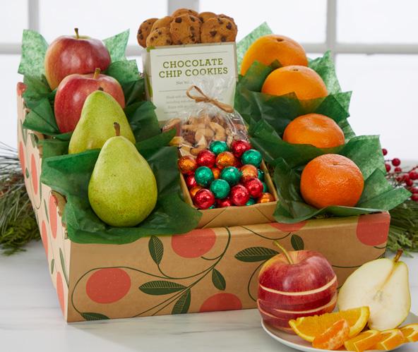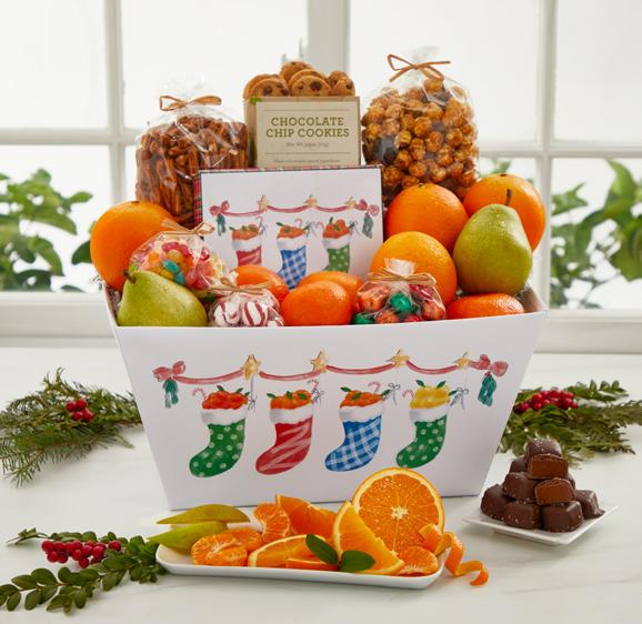 Thrill your friends, family and associates with Chocolate Chip Cookies, Holiday Milk Chocolates, Deluxe Mixed Nuts and Chocolate Crunch Popcorn, along with your choice of fruit, rushed straight from the trees and ready to enjoy. Original gift assortments and exclusive treats, only from us.