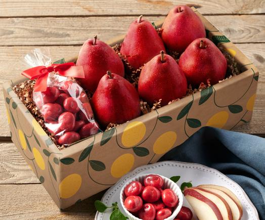 Show a friend, family member, neighbor, or co-worker how thankful you are for them! Inside our exclusive Fall Flavors gift box are 3 creamy-sweet King Comice Pears plus a sampling of sweets: Chocolate Chip Cookies, Honey-Roasted Peanuts and Jelly Belly® Beans.