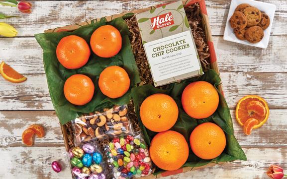 We’ve updated our Grove Favorites Gift Box with spring and Easter treats. You’ll fi nd our Grove Oranges and Honey-Sweet Tangerines, now with Milk Chocolate Easter Eggs, Assorted Jelly Belly® Beans, Chocolate Chip Cookies and Fruit and Nut Snack Mix. A little something for everyone in this version of our classic gift.